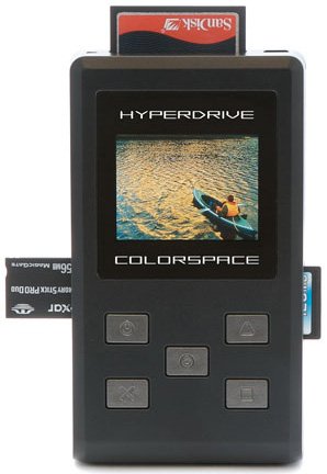 The Hyperdrive ColorSpace includes a 2.5" 100GB 5400RPM Hard Drive, Full Color, High Resolution 320x240, 262K color screen. ColorSpace supports JPEG and RAW images from DSLR cameras and supports 18 different types of digital memory cards. The unique Visual Menu System is an intuitive quick access Operating System with Vista-like translucent buttons. The OS is also full upgradeable vial firmware. With several tools available to use on the fly, such as; Visuall Backup, Visual Explorer, Visual Search and the ability to scan and repair bad sectors on any memory card, the Hyperdrive ColorSpace is ideal for amateur photographers, PRO photographers or families.