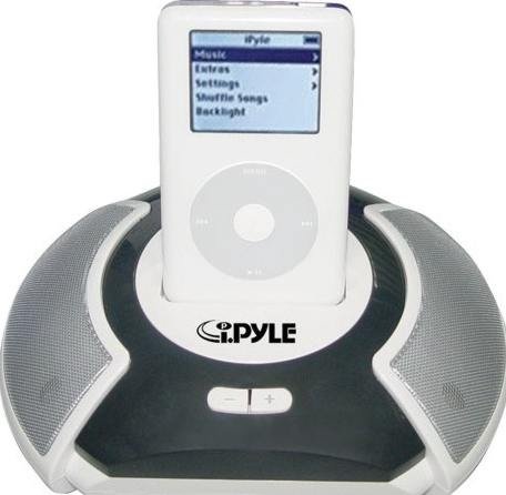Portable Speaker Compatible with All iPod Models Input: iPod Dock/ 1/8' (3.5mm) Mini Stereo Jack Auxiliary Input Jack to Connect Other Audio Products Such of PC Computer/Laptops/ iPods/ MP3/ PDA/ etc Power Output: 40Watts x 2 (1KHz 10% 7HD) Per Channel Frequency Response: 150Hz-18KHz Signal-to-noise Ratio: 80dB Speaker Size: 1.5' x 3W x 2 Requires 3 AA Batteries or AC Adaptor AC Adaptor Manual Included Ipod Not Included